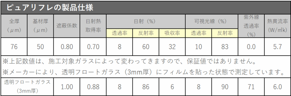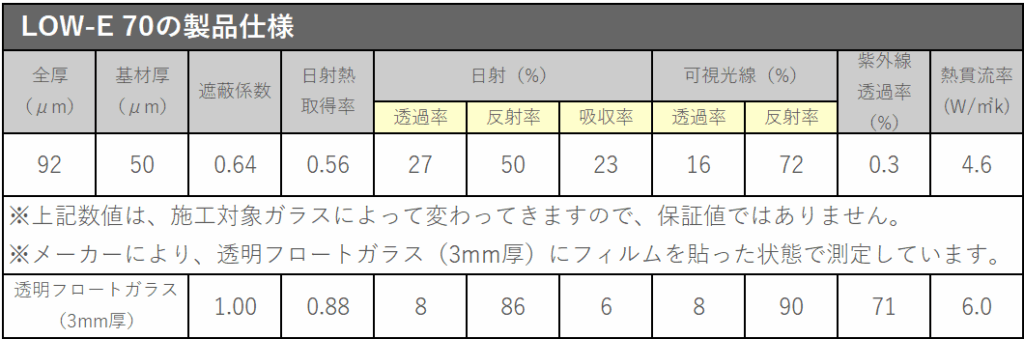 • 透明度を最大限に残し暑さ対策(遮熱)