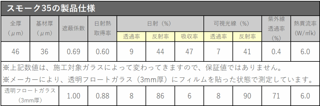 • 可視光線透過率が低いため日焼け対策にも有効