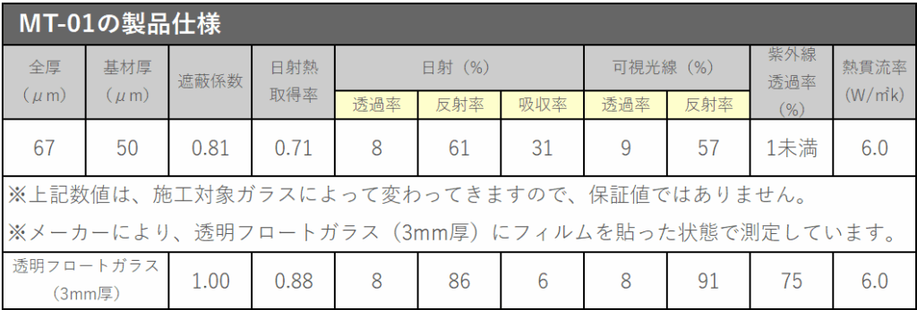 - 透明度をしっかりと残し暑さ対策(遮熱)
