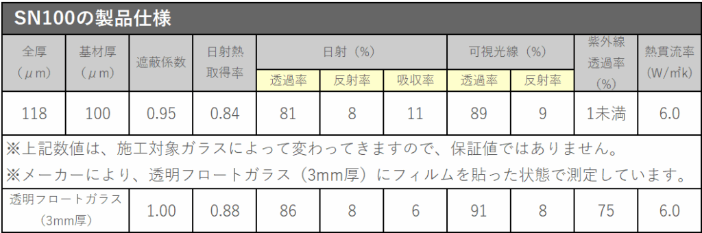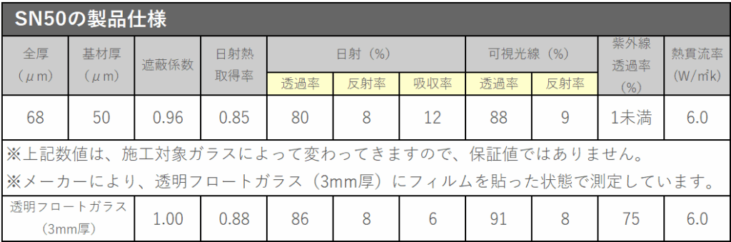 - 一般的な飛散防止フィルムの2倍の厚み(SN50の2倍の厚み)