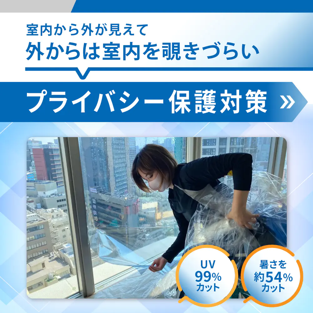 効果:プライバシー保護・眩しさ緩和・UV99%カット・飛散防止